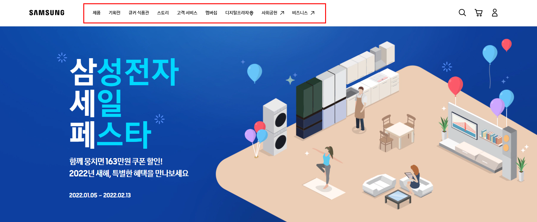 GNB (Global Navigation Bar) : 사이트 전체에 동일하게 적용되는 최상위 전체 공통 네비게이션.